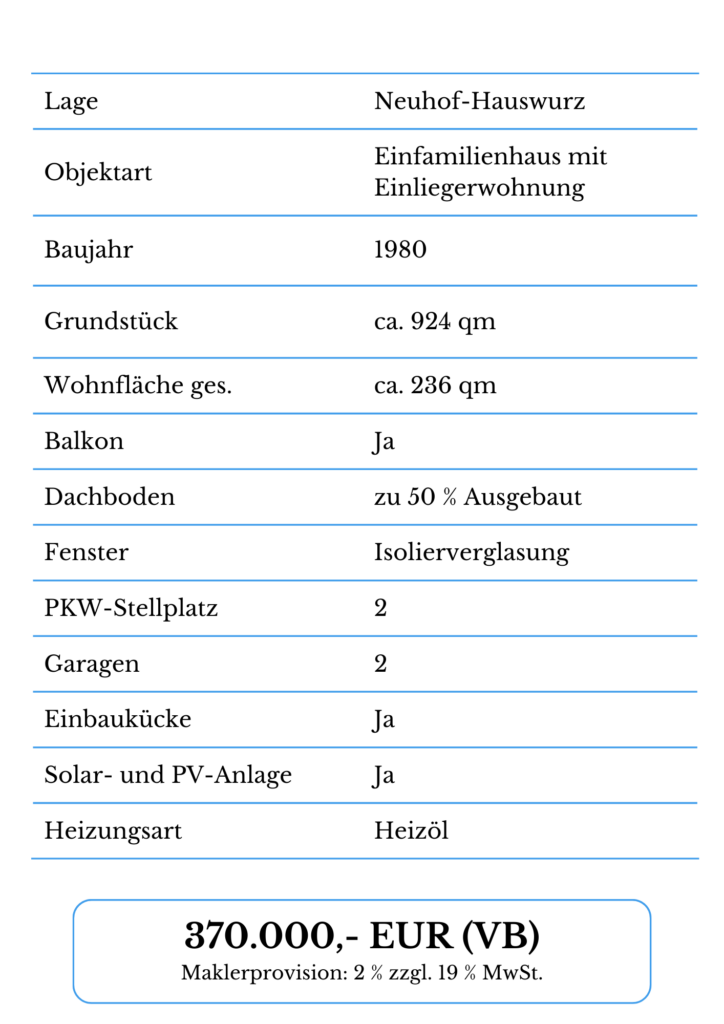 Das Haus befindet sich in Hauswurz in einer lebenswerten Gemeinde mit guter hoher Wohnqualität.